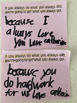 I am not throwing my boys under the bus here (especially after professing myself to be a boymom), so please don't misunderstand. However, having a girl, in contrast, is like escaping from Alcatraz, on certain days. Catherine runs errands with me and enjoys it. She offers to help with everything. I rarely have to remind her to do her chores, much less badger her to get them done, as I do with the boys. She rarely burps or farts and if she does, she exhibits the appropriate level of embarrassment and apologizes rather than doing it again and making a scene over it. I don't have to listen about her private parts, ever. She leaves me love notes frequently and everywhere. She wants to please me and to be with me (probably to escape her farting brothers) which is understandable. She is neat, considerate and thoughtful. She is the most loving person I know.