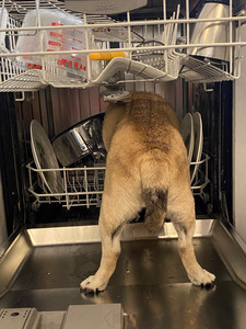 Fitzy is always kind enough to help me with the dishes. What a thoughtful pug!