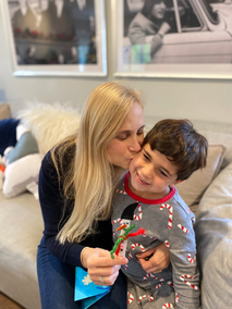 Both Miles and Catherine gave me gifts. Catherine bought this sunflower ornament on a recent trip we took to Descanso Gardens, in their gift shop. She was thoughtful enough to pick it out in honor of my mom, since those were my mom's favorite flowers. Miles made me a homemade snowman and card at school. I was so overjoyed to receive their thoughtful gifts. Catherine was even thoughtful enough to pick out, order (pay for) and wrap individual gifts for all her brothers. I don't know anyone sweeter.